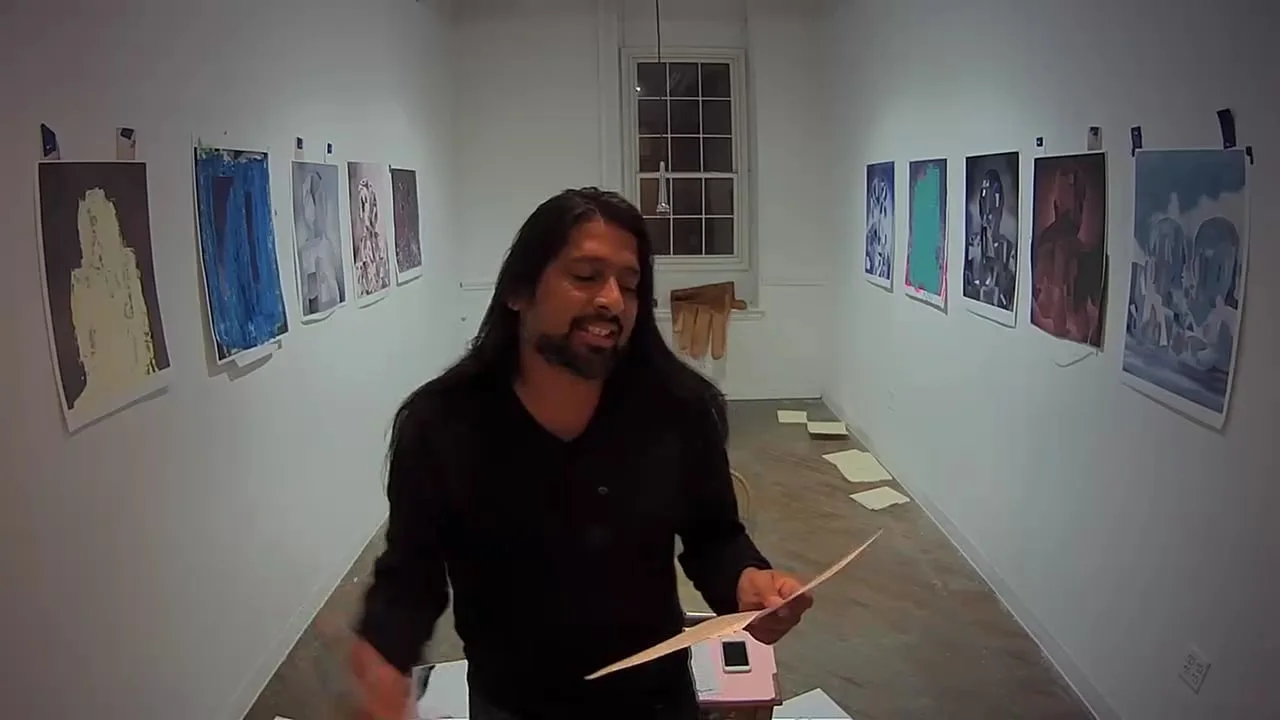 SuperCuts was an exhibition that explored various forms of power by removing the viewer from the act of physically viewing the artwork. The exhibition was accompanied by a series of three performances that further investigated power dynamics through art, poetry, and sound as experienced through a live-feed video. Below is a selection from the three performances.